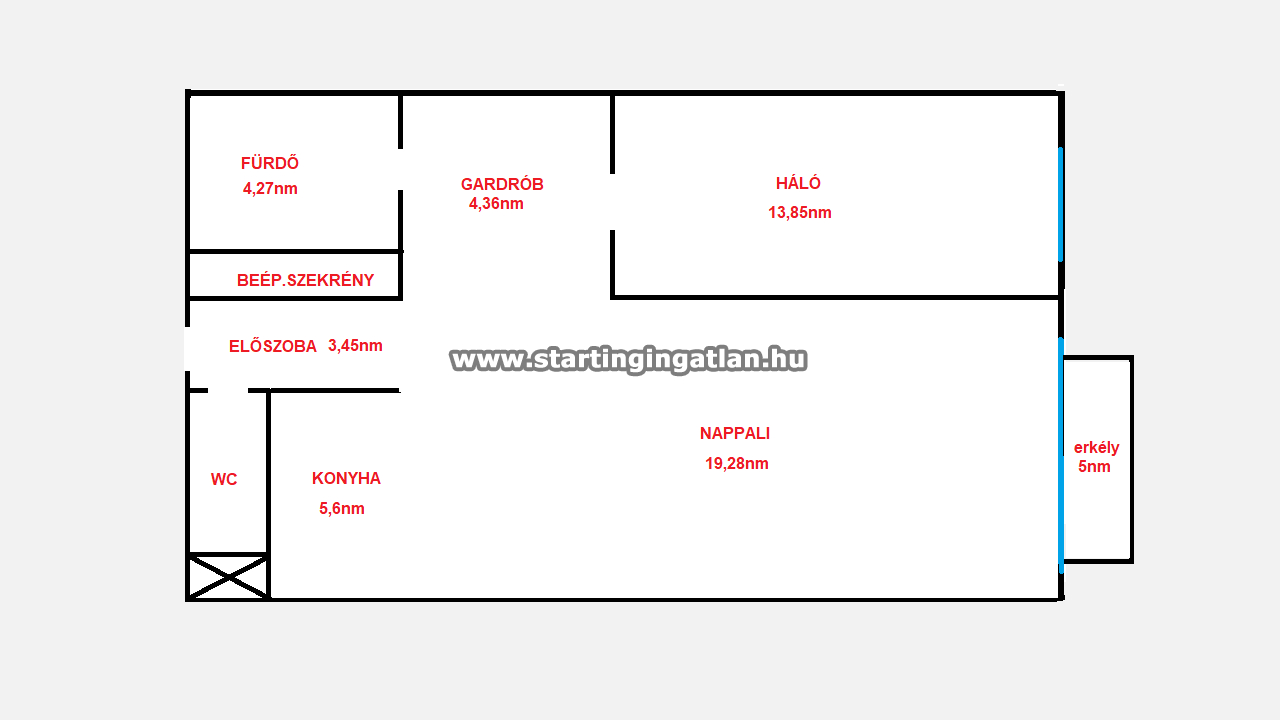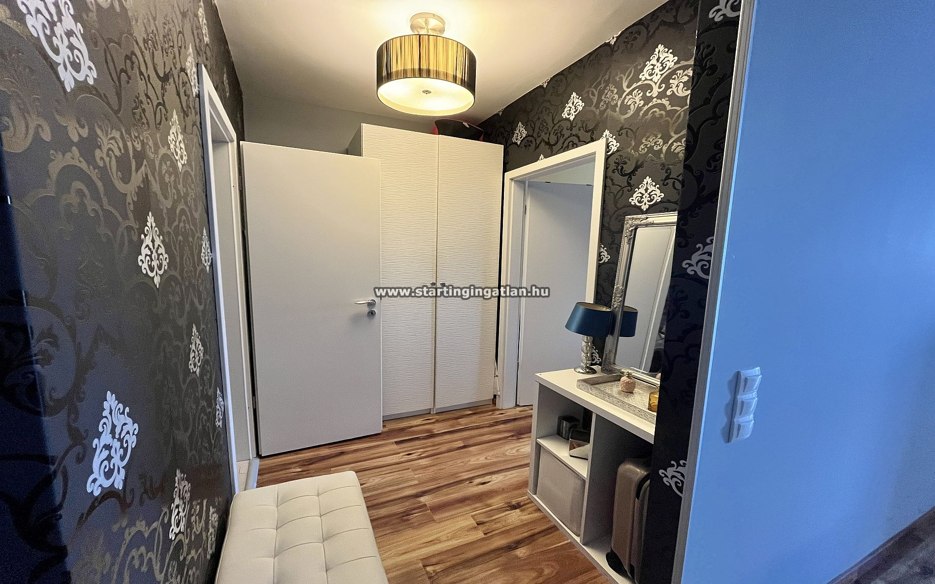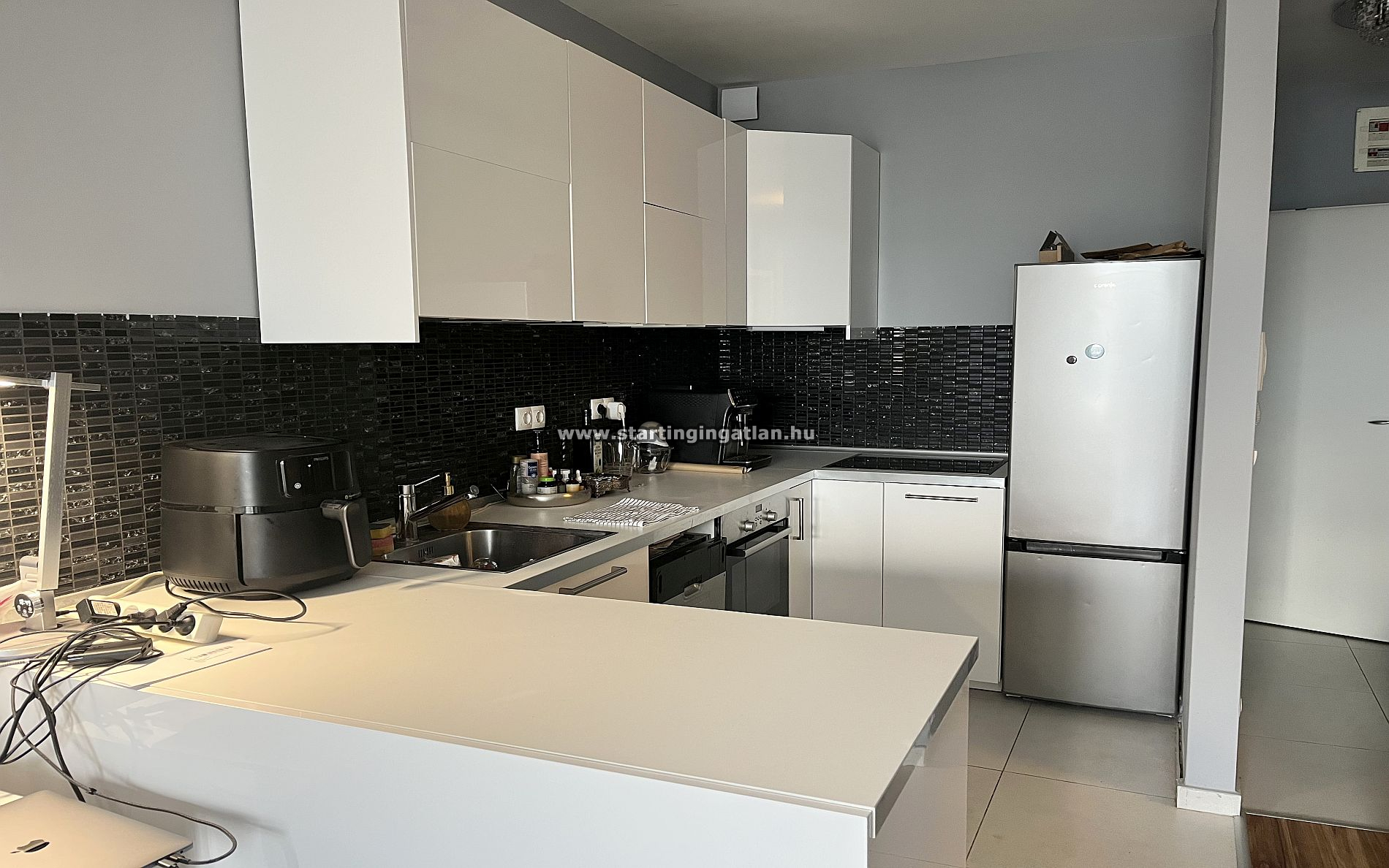 A lakás 1,5 évvel ezelőtt esztétikai felújításon esett át, így jelenleg is szép állapotnak örvend; igény esetén csupán a laminált parketta cseréje indokolt. A modern konyhabútor sütővel, főzőlappal és mosogatógéppel a vételár részét képezi, akárcsak az előszobai szekrény, míg a többi berendezés megbeszélés tárgya.
