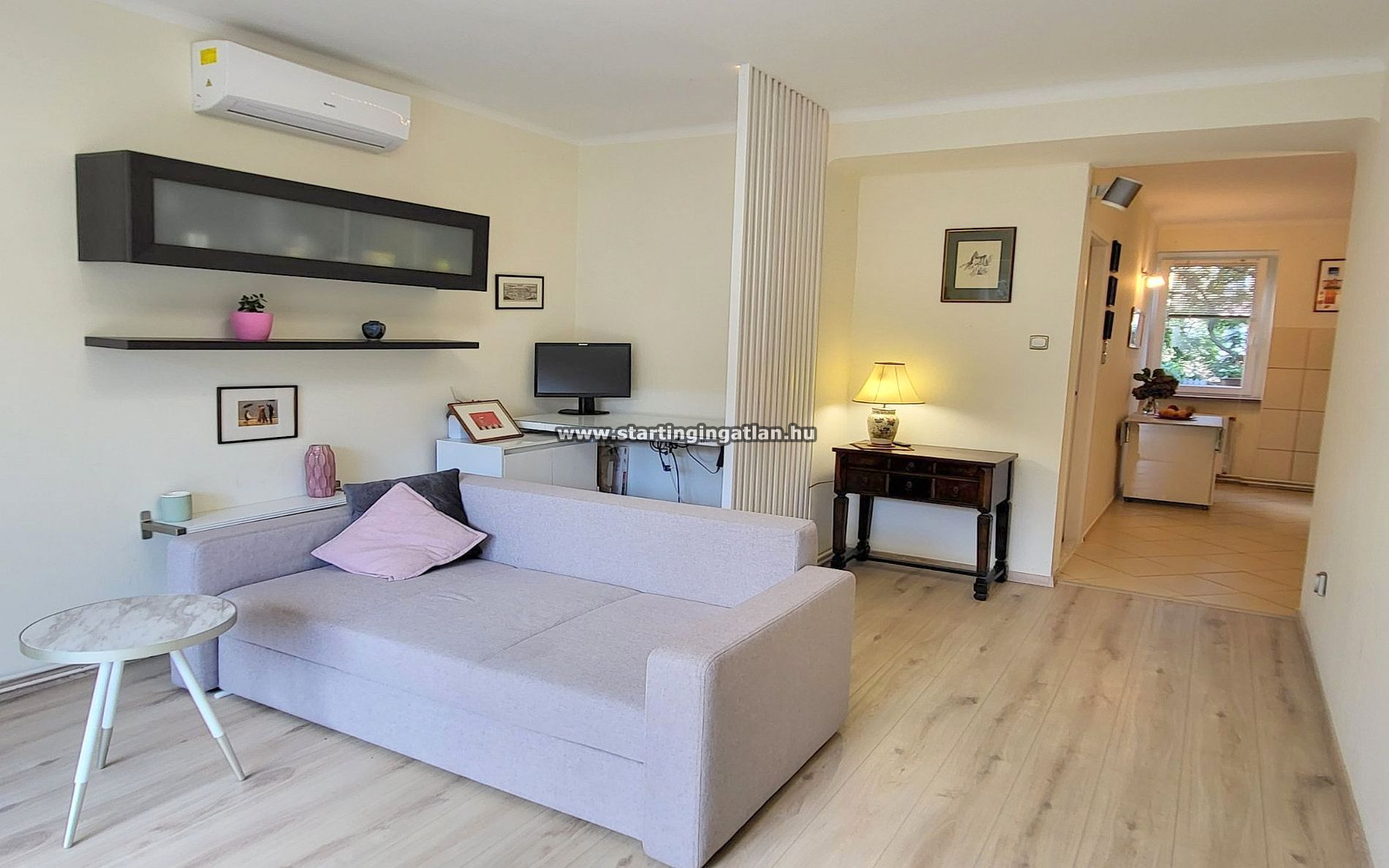 XIII. ker. Vizafogó egyik legzöldebb, legélhetőbb részén, a Visegrádi utcában kínálunk egy igazán különleges otthont, ahol a városi élet kényelme és a zöldre néző nyugalom tökéletes egyensúlyban találkozik. 60-as években épült, 3 emeletes társasház 2.emeletén helyezkedik el a lakás, zárt lépcsőházból nyílik, teljes körűen felújított, 47nm-es, 1,5 külön nyíló szobás, 2 frontos tájolású, minden helyisége és az erkély is gondozott, zöld környezetre néz, így a mindennapokat madárcsicsergés és lombkoronák látványa kíséri, nem pedig a szomszédok közelsége. A teljesen gépesített, igényesen felszerelt ingatlan modern, fiatalos, számos kényelmi megoldást kínál, mint a klíma, a hangulathoz igazítható világítás csendes, pihentető atmoszférát biztosít.