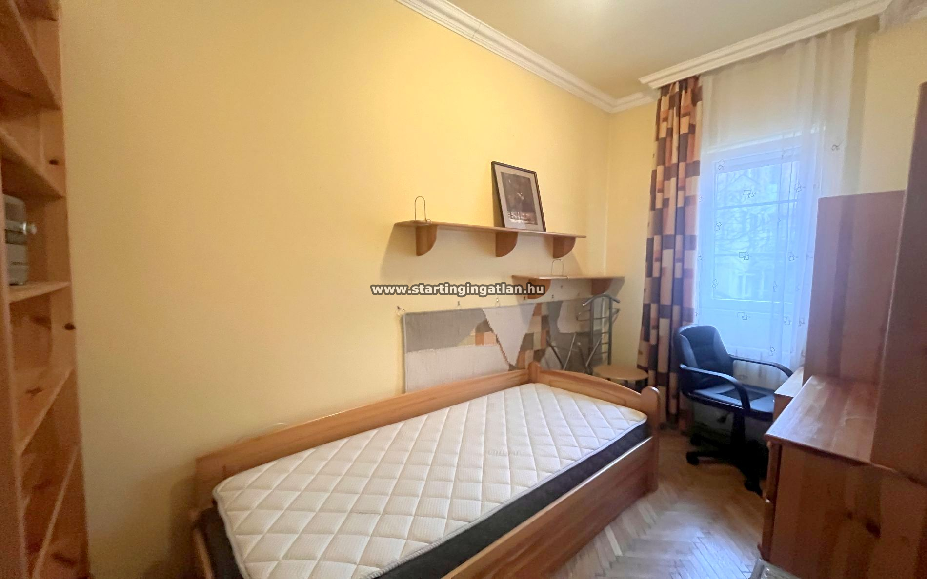 Kiadó Budapest egyik legkedveltebb városrészében, a XIII. kerületi Újlipótváros szívében, a Radnóti Miklós utca 34. szám alatt, közvetlenül a Pozsonyi út mellett egy tágas, világos, erkélyes, 89 m²-es, 2 + 1 félszobás lakás egy liftes, rendezett, társasház negyedik emeletén. Az 1950 előtt épült, elegáns arányokkal rendelkező épület karaktere és a 3 méternél magasabb belmagasság különleges térélményt biztosít, amelyet a lakás kiváló elosztása tovább erősít.