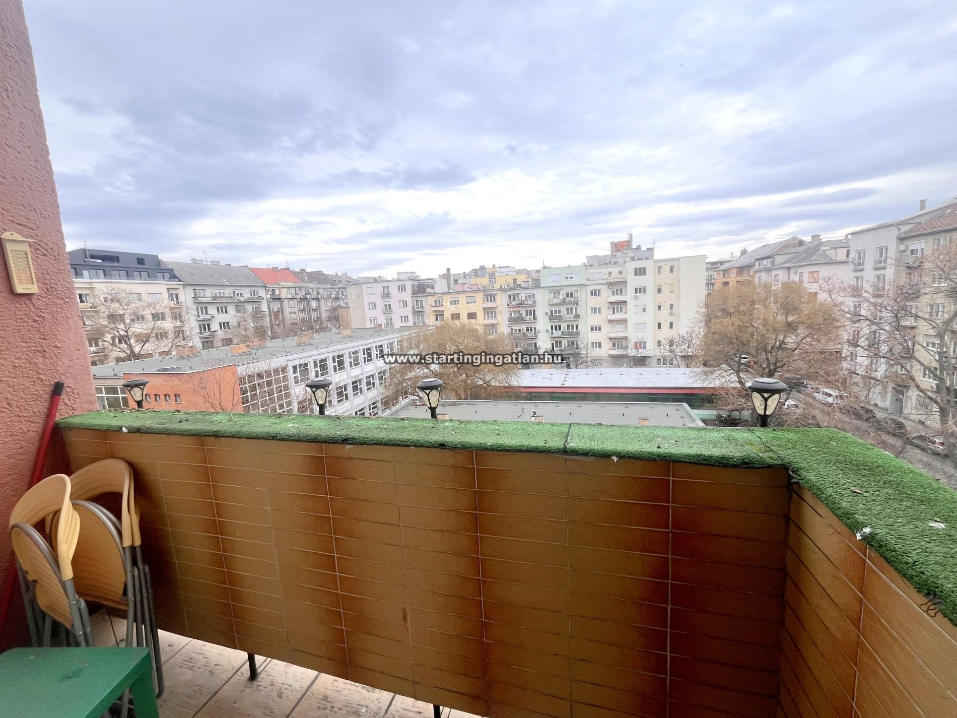 A különálló, 8,1 m²-es konyha praktikusan kialakított, a fürdőszoba és a WC külön helyiségben is megtalálható, ami a mindennapi kényelmet szolgálja. A 3,1 m²-es erkély kellemes városi panorámát kínál, a kilátást nem zavarja közeli épület, így valódi, szabad térérzetet ad, miközben a lakás közvetlen környezete csendes és kulturált. A távfűtés egyedi mérővel működik, a havi rezsiköltség kedvező, a közös költség 25 000 Ft, a lakás légkondicionálóval felszerelt, nemdohányzó és kisállat nem hozható.